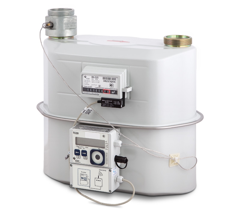 Принцип действия комплекса СГ-ТК основан на одновременном измерении объема газа (при рабочих условиях), прошедшего через счетчик и температуры газа с последующим вычислением, обработкой и архивированием приведенного к стандартным условиям объема газа с учетом условно-постоянных (подстановочных) значений давления и коэффициента сжимаемости газа с помощью корректора объема газа ТС220.